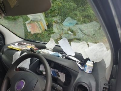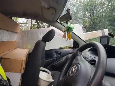 “As seen in the photos below, one gentleman was using his dashboard as his filing system and another driver was transporting DIY equipment unsafely along the M25. The drivers were given words of advice and rectified their mistakes before being allowed to continue their journeys.”