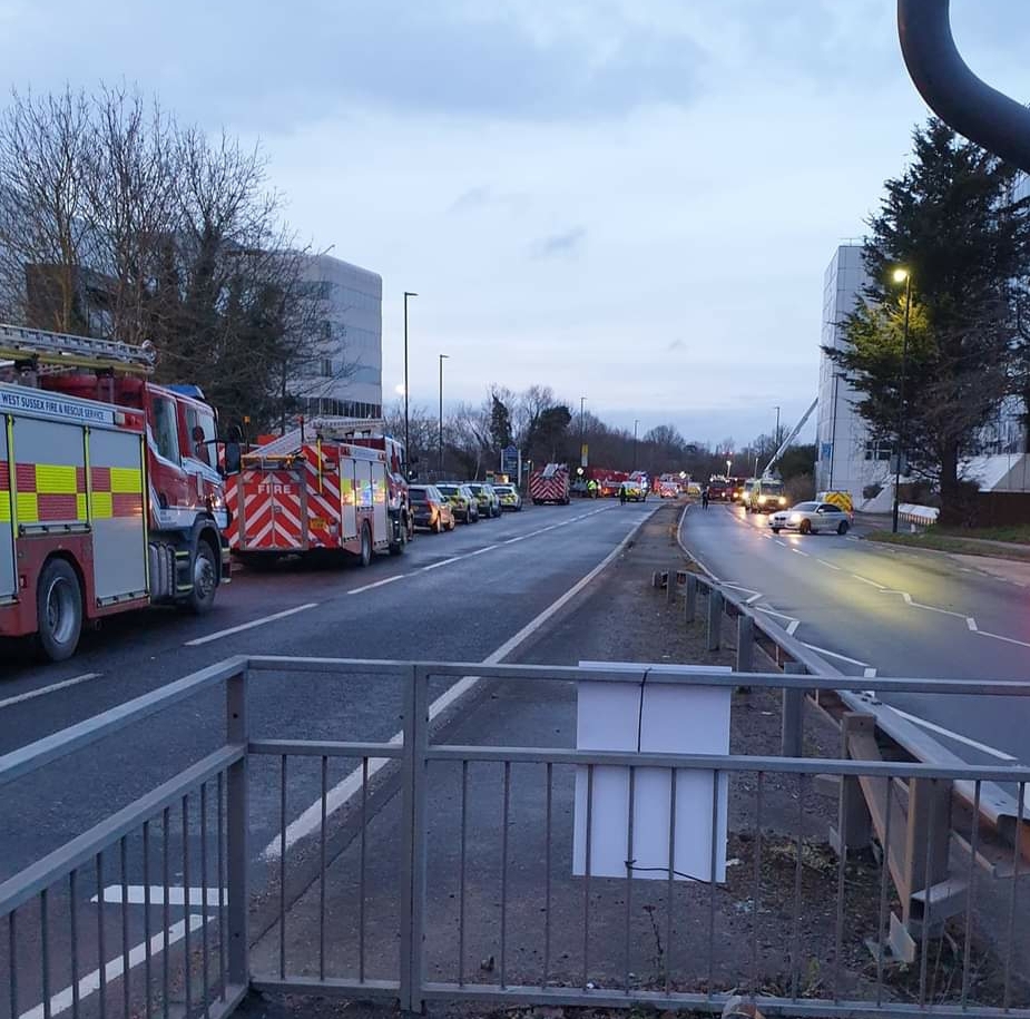 Photo: Fire engines on the A23 London Road, Crawley.  Photo courtesy Jonathan Easthill