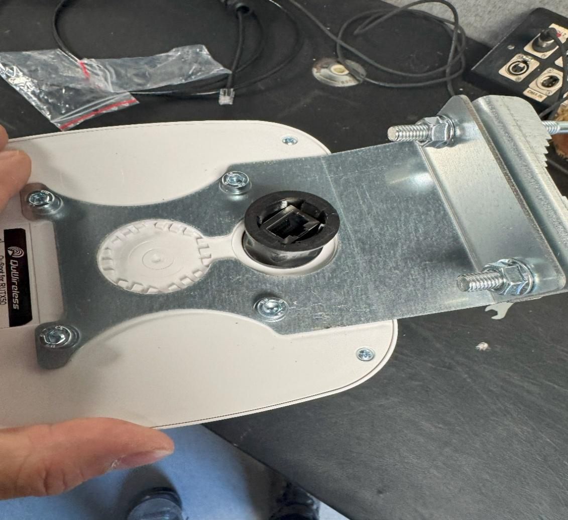 The antenna cover is then attached along with the bracket for pole mounting and the ethernet cable via the IP67 rated connector underneath.